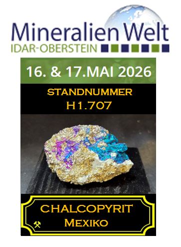 - 22.10. - 25.10. Münchner Mineralientage im Messegelände München ♦ Obacht - wir ziehen um in die B-Hallen, Eingang West ♦