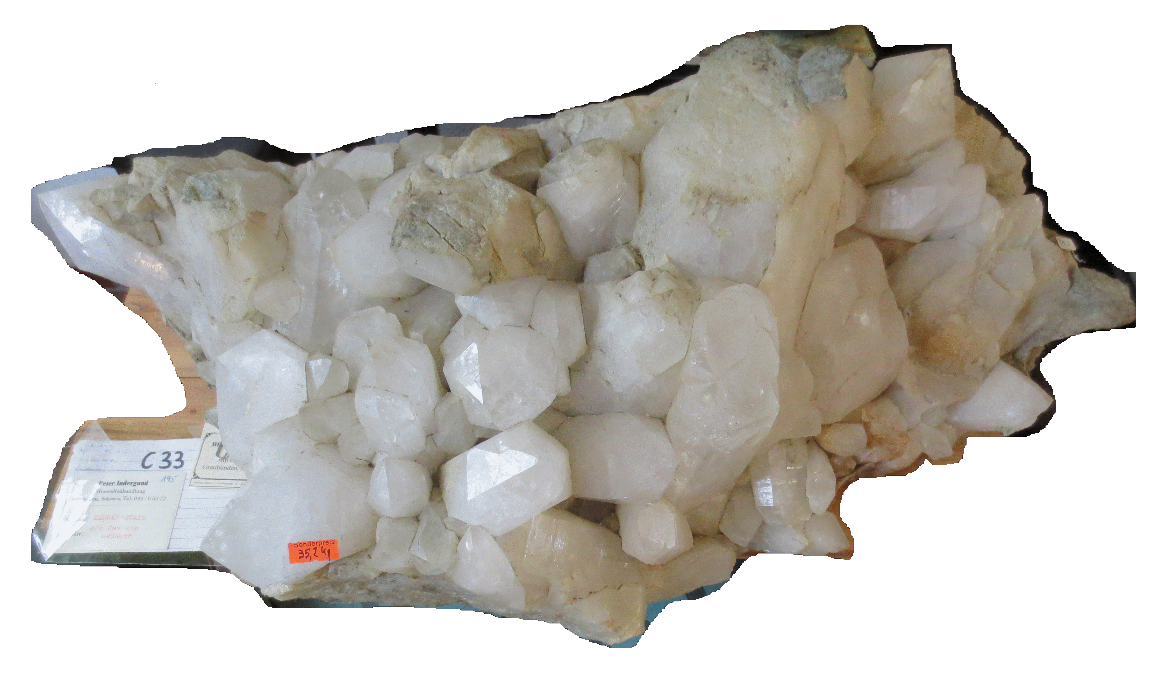 Die Bergkristallgruppe aus der Schweiz ist 35,2kg schwer, 60cm breit, 33cm tief und 22cm hoch.